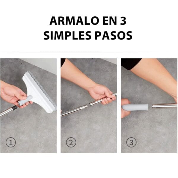Cerdas rígidas para una limpieza profunda: Fabricado con materiales resistentes, el Cepillo Limpiador De Pisos Ventanas Múltiple 3 en 1 ofrece una limpieza efectiva en superficies duras. Las varillas cuentan con juntas roscadas con bloqueo, asegurando que no se afloje durante su uso.