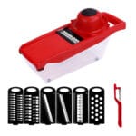 - Multifuncional: Olvídate de tener un sinfín de cuchillos y aparatos ocupando espacio en tu cocina. Este cortador te ofrece 6 funciones en 1: pela, corta, pica, ralla y rebana con una sola herramienta.