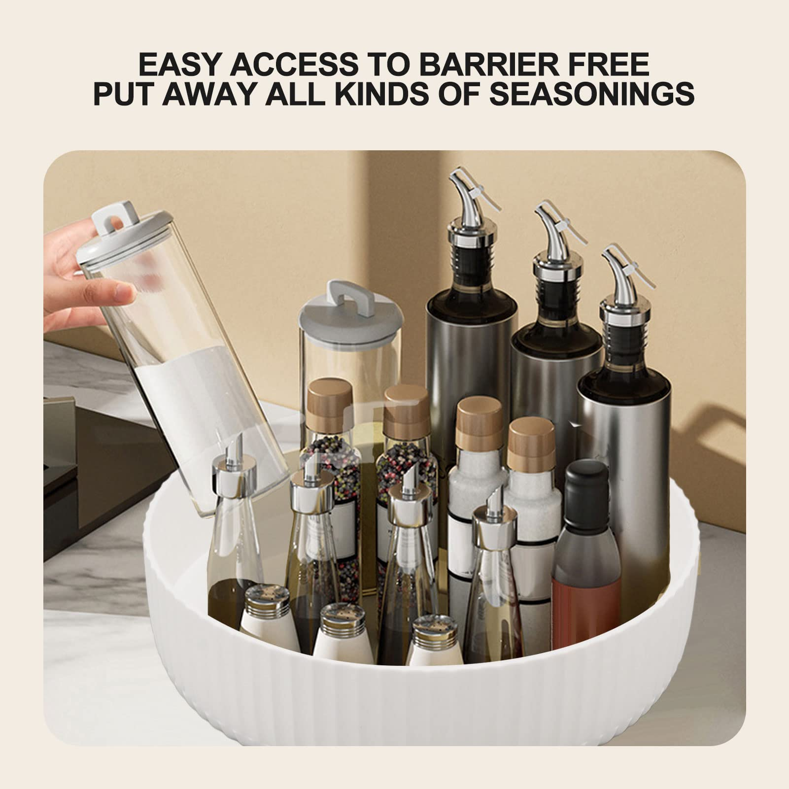 Organizá tus frascos y objetos con un soporte giratorio práctico que aprovecha mejor el espacio.